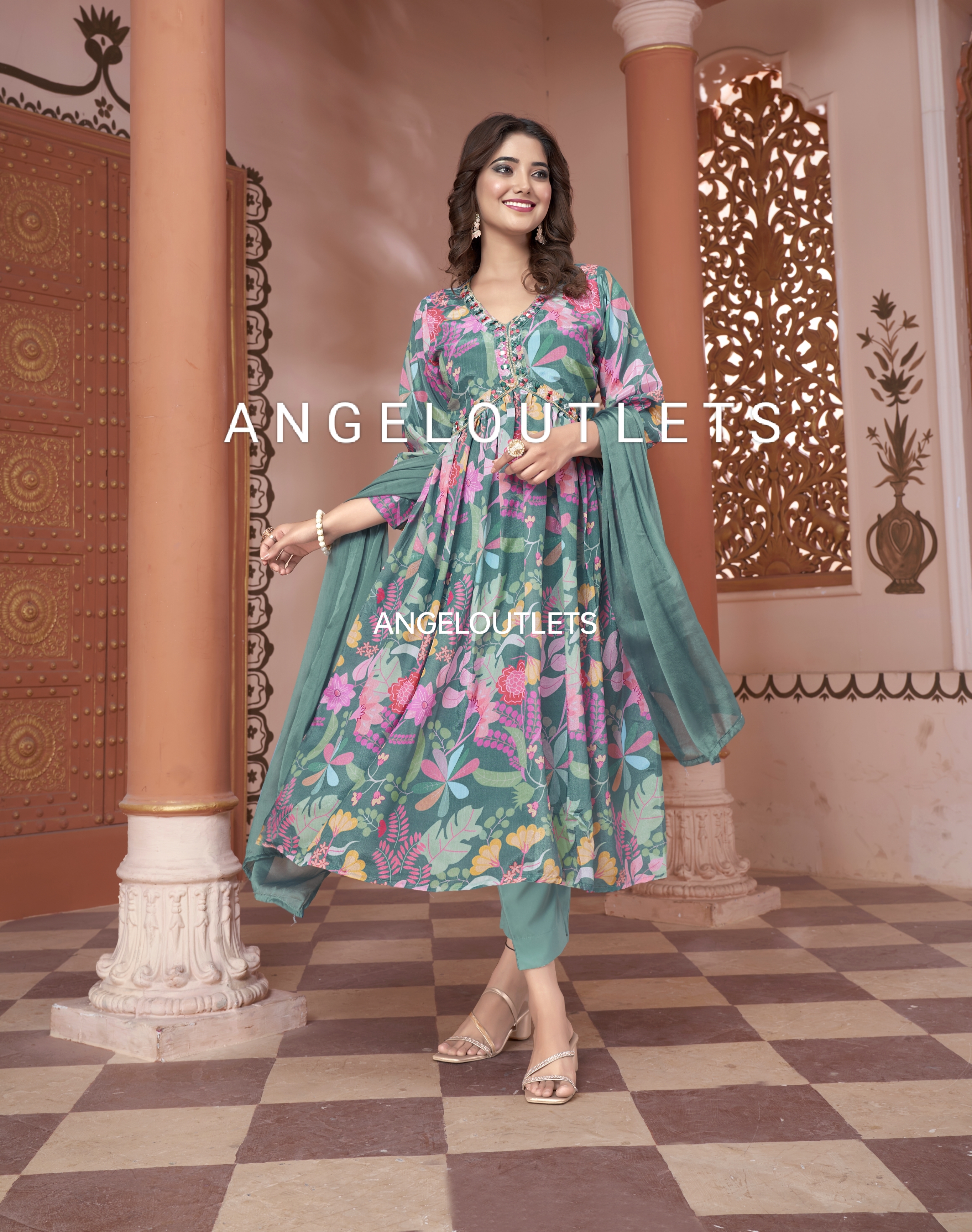Beautiful Mehera Green Floral Alia Cut Suit Set